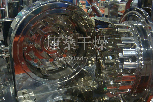 本機組利用活動齒盤和固定齒盤間的相對運動,使物料經齒沖擊、摩擦及物料彼此間;沖擊而獲得粉碎。粉碎好的物料經旋轉離心力的作用自動進入捕食袋,粉塵由吸塵箱經布袋過濾回收。該機按“GMP”標準設計,全部用不銹鋼材料制造,生產過程中無粉塵飛揚。且能提高物料的利用率,降低企業成本,目前已達到水平。